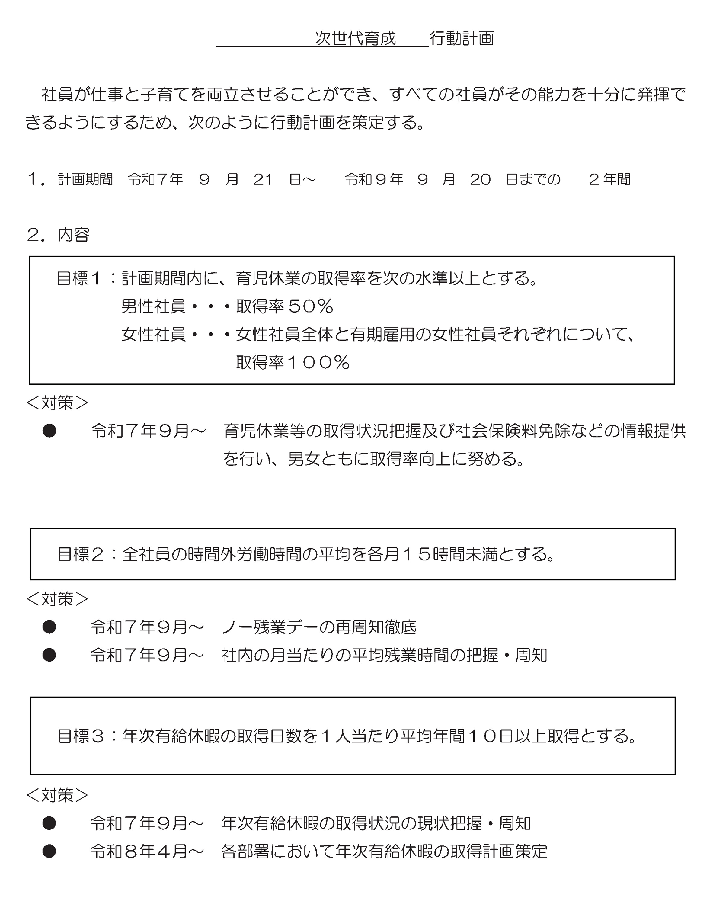 この度当社は次世代育成行動計画として一般事業主行動計画を策定致しました。