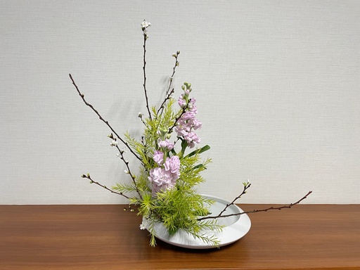 今週お花は「たてるかたち」です。主材のカンザクラは名前の通り寒い冬に花を咲かせる早咲きの桜です。桜は春のイメージですが、冬に開花する品種が複数あります。冬のサクラも可憐で乙なものですね。