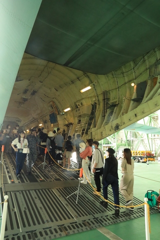 スーダンから帰国したC2輸送機の中はとても広かったです。